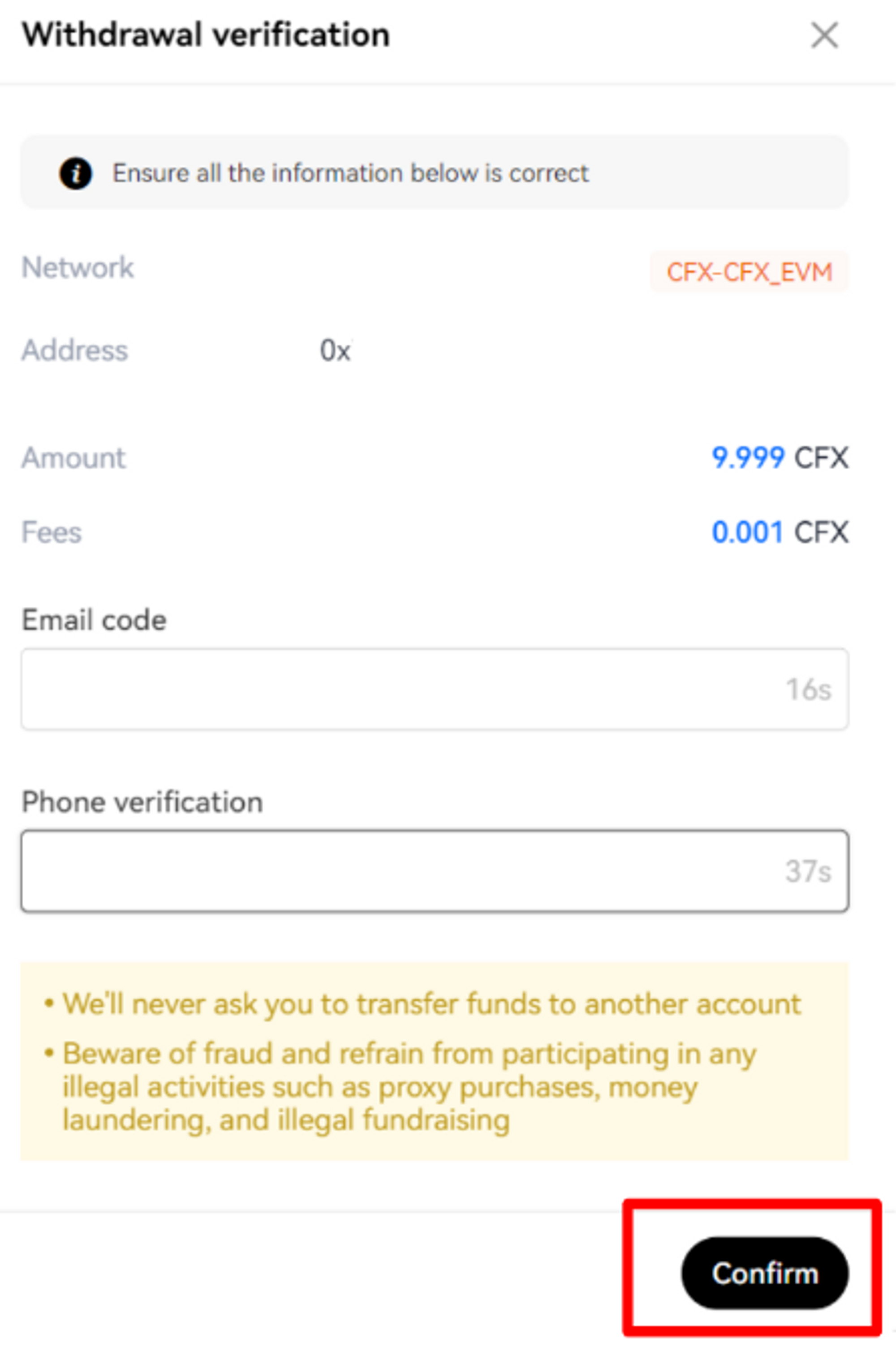 8. Enter your fund password, email/phone code, or MFA code, then click Confirm request.