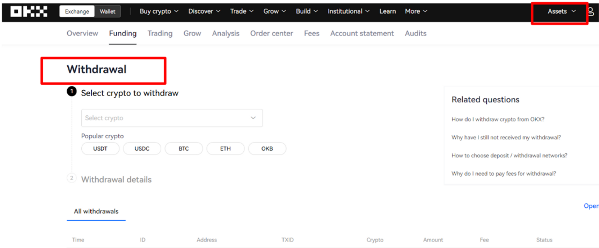 2. In the navigation menu, go to "Assets" and click on "Withdraw."