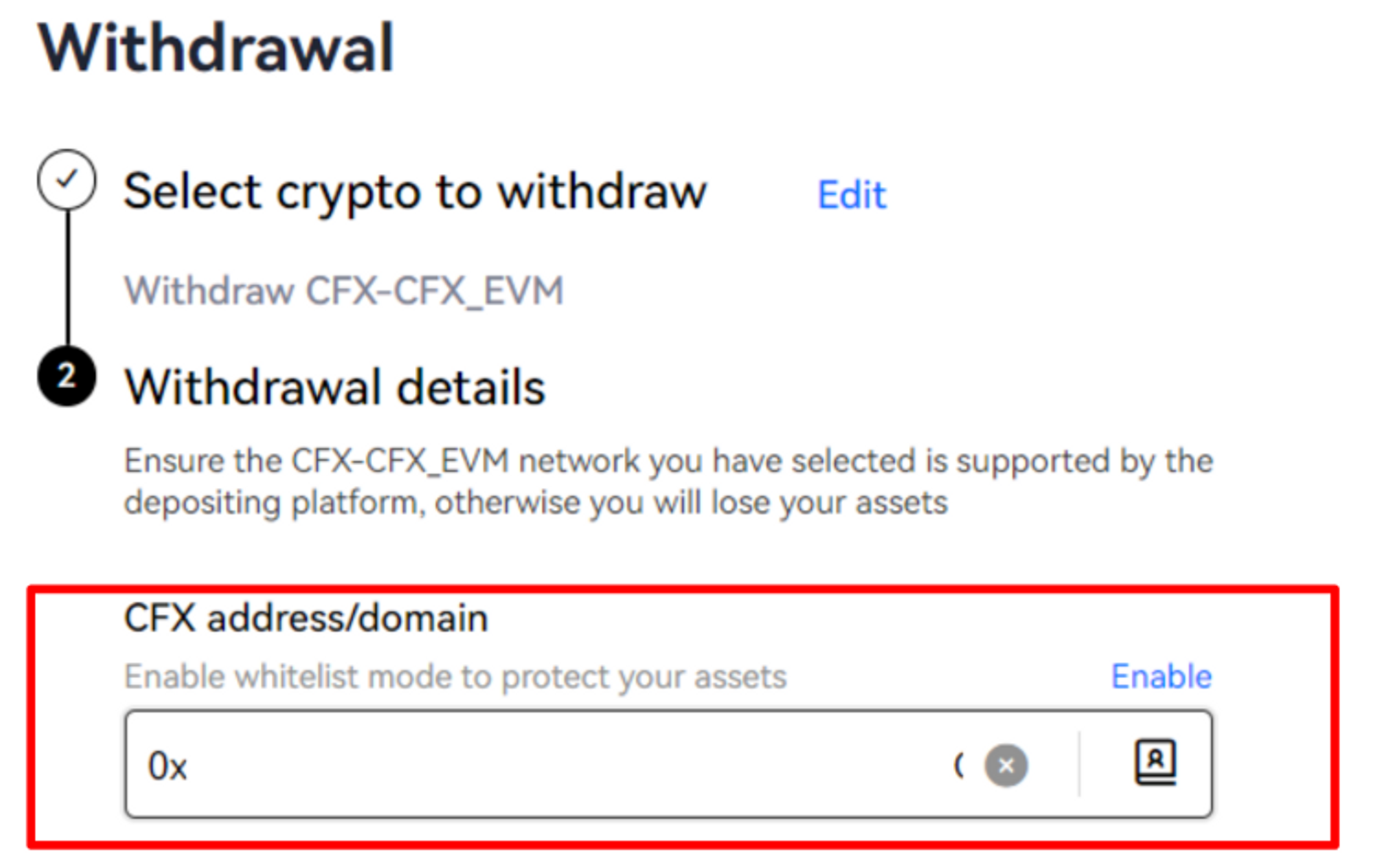 * At least 0.1 CFX traded on OKX. You can trade using the CFX/ETH and CFX/USDT markets. To learn how to conduct spot trading on OKX, see: How to conduct spot trading.