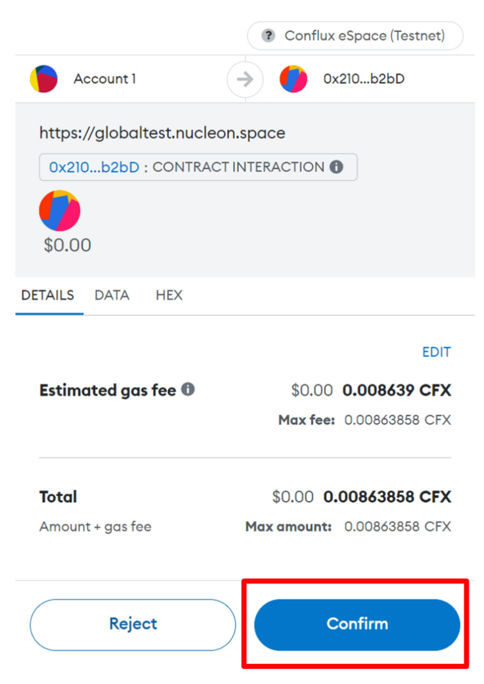 **Step 3:** Review the transaction contract and make sure everything is correct. Then, select the "Confirm" button to approve the transaction.