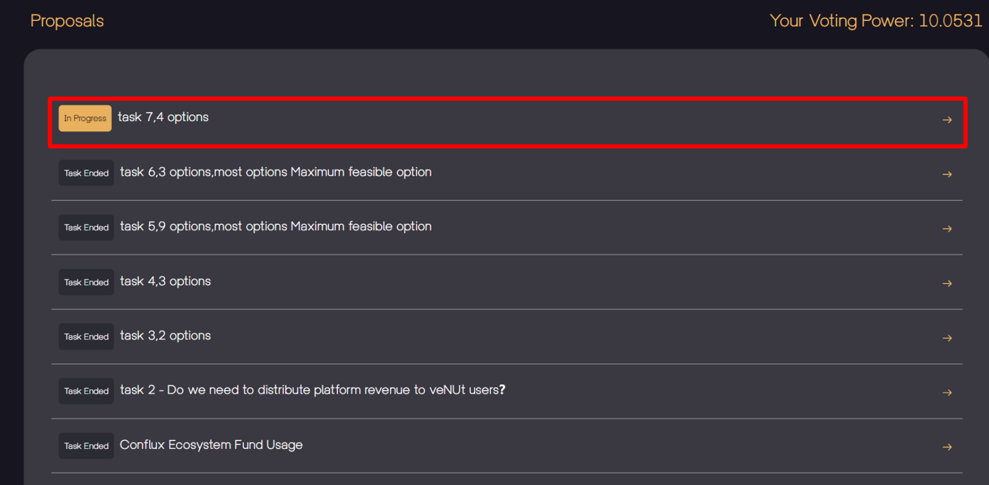 **Step 1:** Review the available proposals in the governance platform and select the one you wish to vote on.